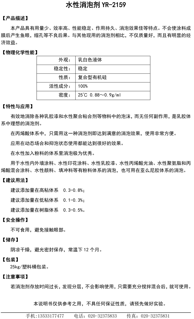 有机硅聚醚消泡剂YR-2159