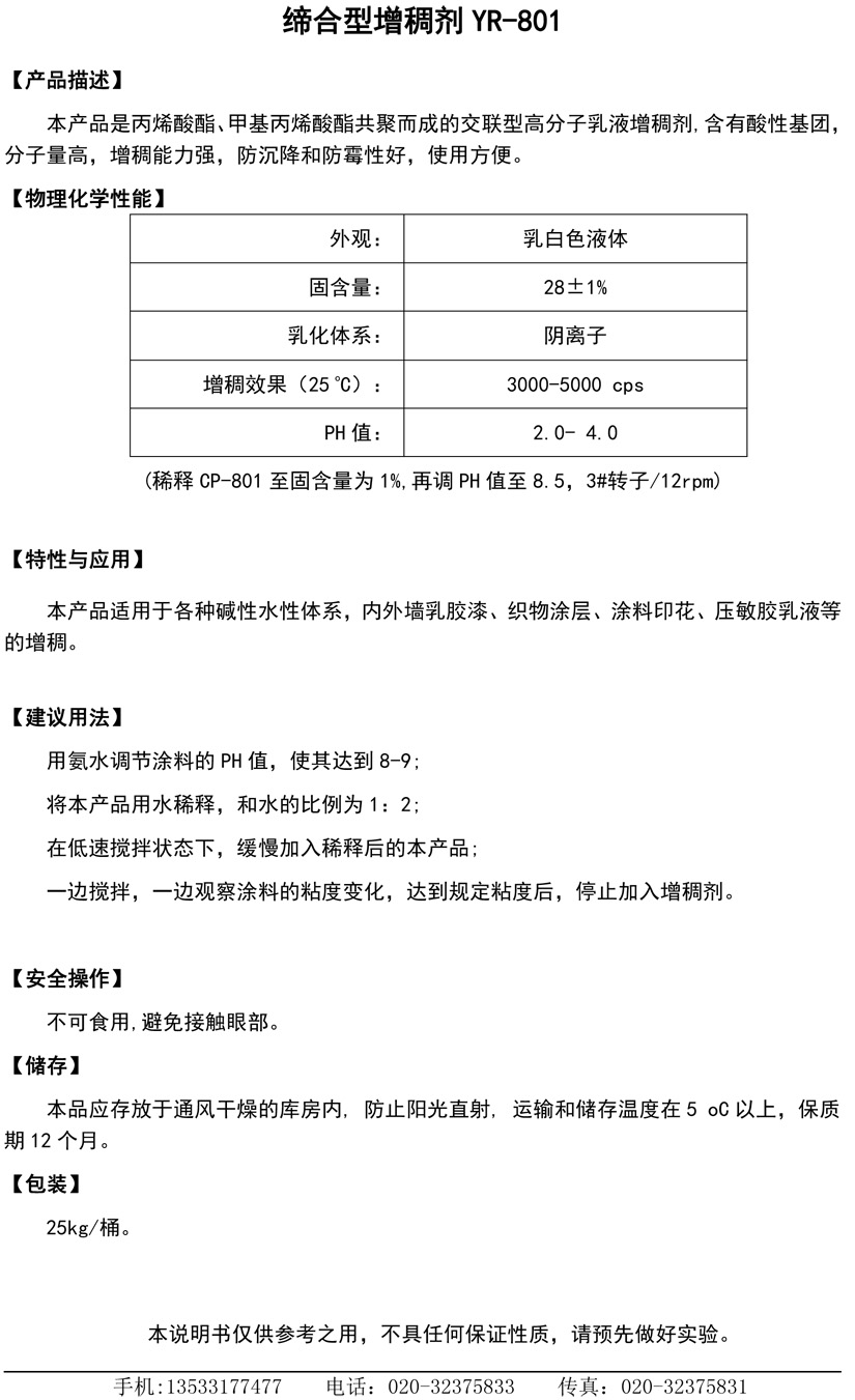 丙烯酸缔合增稠剂YR-801