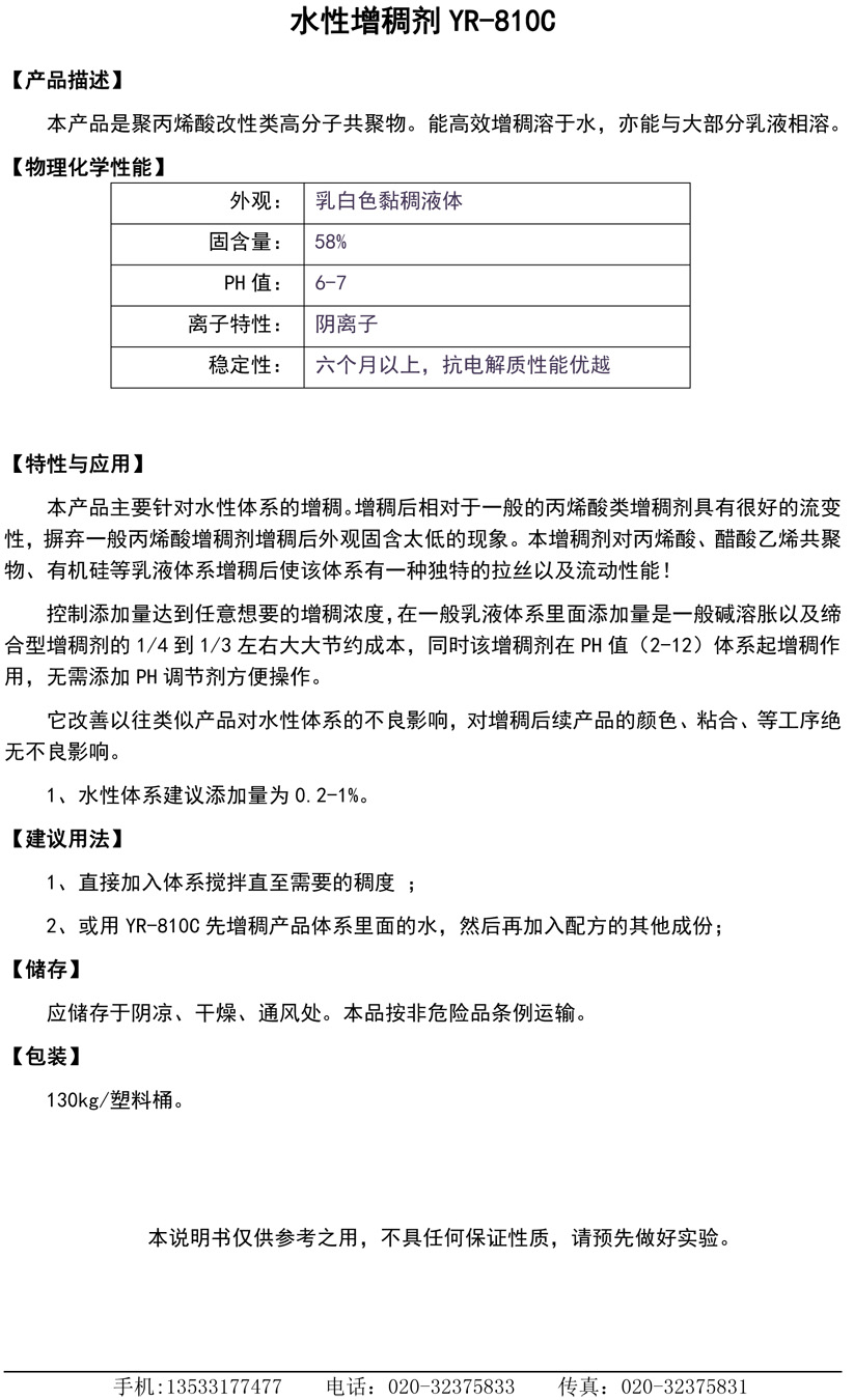 水性增稠剂YR-810C