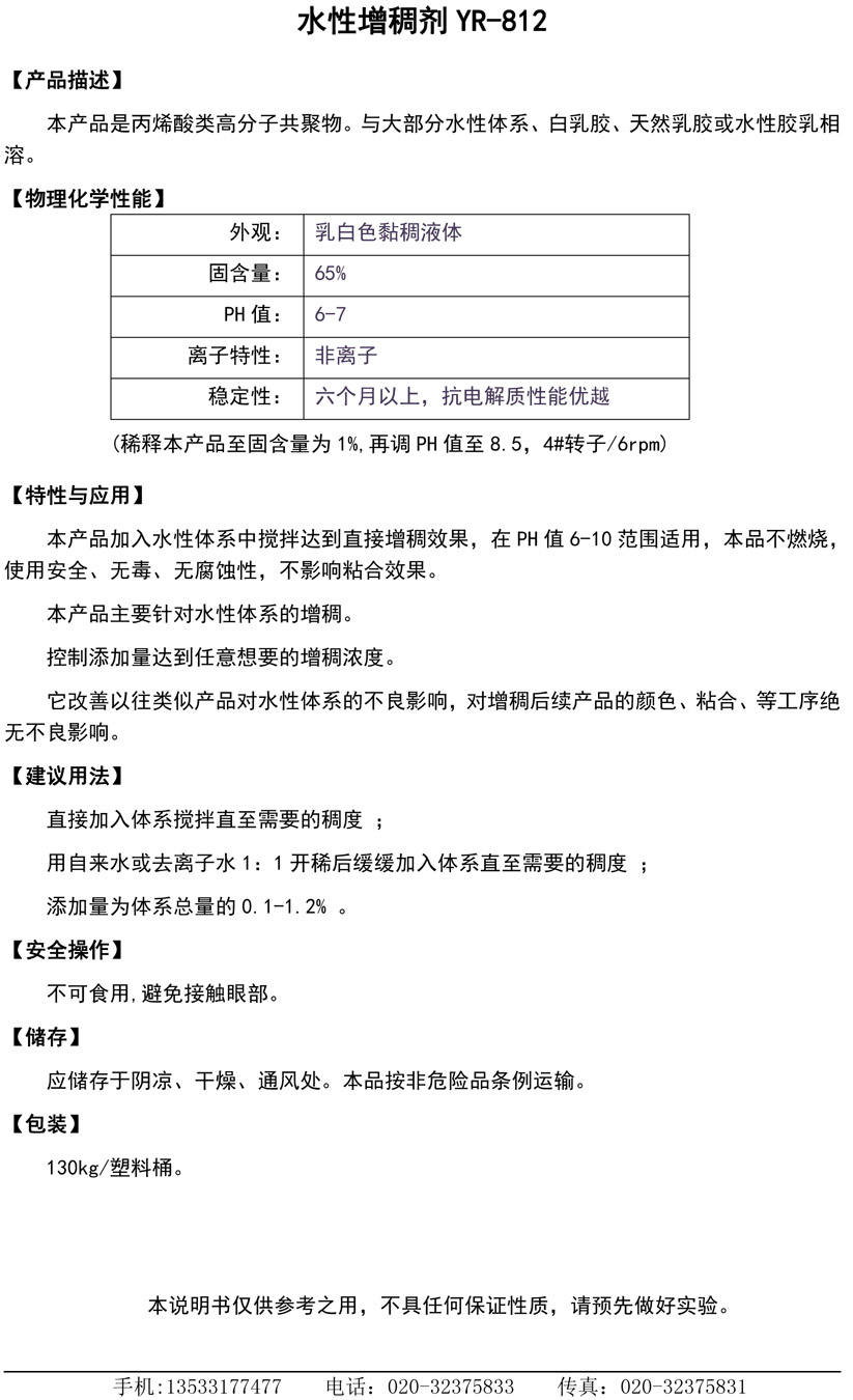 水性增稠剂YR-812
