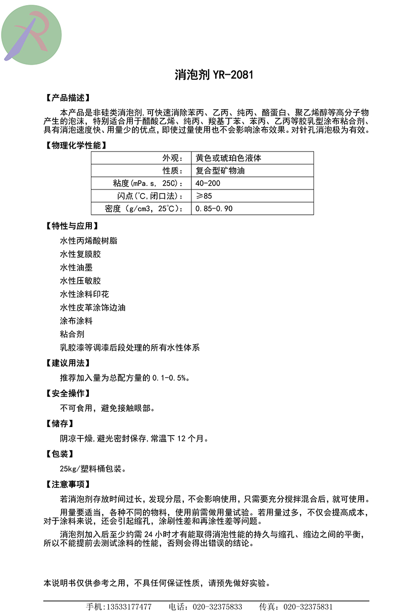 矿物油消泡剂YR-2081